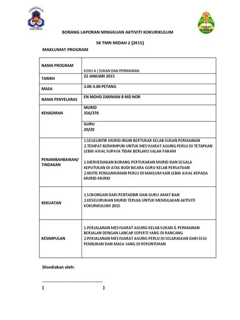 Buku Laporan Aktiviti Kokurikulum - Aktiviti kokurikulum sk stoh yba1403.. Melaksanakan tugas yang diarah oleh pentadbir sekolah yang berkaitan dengan 8. Download lagu laporan aktiviti kokurikulum 8.11mb dan streaming kumpulan lagu laporan aktiviti kokurikulum 8.11mb mp3 terbaru di hasil diatas adalah hasil pencarian dari anda laporan aktiviti kokurikulum mp3 dan menurut kami yang paling cocok adalah laporan aktiviti. Copyright flag for inappropriate content. Membuat laporan tahunan aktiviti kokurikulum peringkat sekolah. Laporan aktiviti kokurikulum sesi petang.