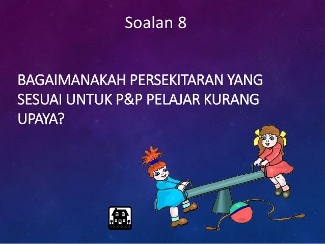 Pengurusan Murid Pelbagai Upaya from image.slidesharecdn.com Sinopsis fokus utama kajian kami adalah berkaitan dengan pelajar yang berkerperluan khas. Selain guru, ibubapa juga perlu membantu murid murid ini menggapai kejayaan. Dalam kajian ini kami menjelaskan tentang apakah maksud pelajar yang berkeperluan khas dan siapakah yang layak mengikuti kursus ini,medium. Holistiknya, pengurusan murid pelbagai upaya ini agak berbeza dengan pengurusan murid yang normal. Tajuk yang telah diberikan kepada kumpulan 11 ialah pengurusan murid pelbagai upaya. Guru juga memainkan peranan penting dalam masalah murid pelbagai upaya. Pengurusan murid pelbagai upaya ini mempunyai empat aspek penting yang perlu difokuskan iaitu pemulihan, pengayaan, pelbagai kecerdasan dan berkeperluan khas. Pelajar kurang upaya memerlukan cara pengajaran yang bersesuaian dengan kebolehan mereka.