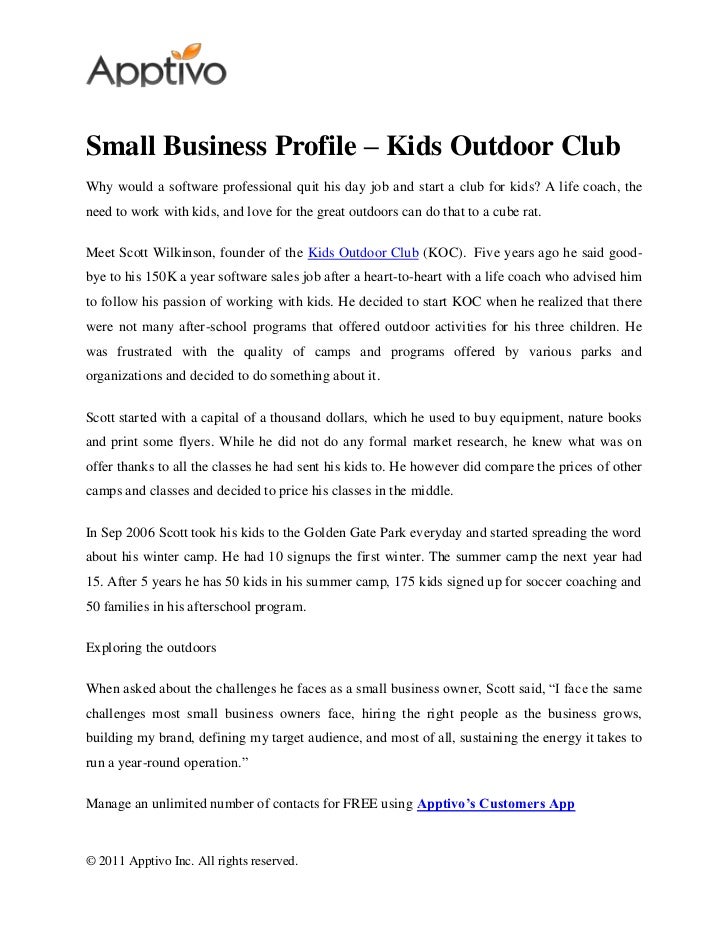 These templates which you can download online come formatted when creating your company or business profile template, include this information: To create business or company profiles, one needs to carefully develop a strategy and map out the characteristics to be highlighted and how to assimilate creating the company profile follows logically after you have a good business plan in place, or have already started. Profile sample for collaborative companies 6. Basic information about the company the items to include here. Choose from 500+ free, downloadable sample business plans from a variety of industries, including restaurant, coffee shop, retail, ecommerce, and don't assume that financial projections for a sample company will fit your own small business.